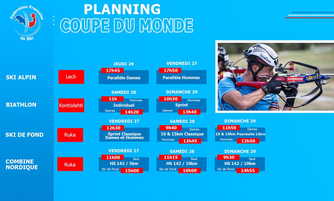 Avec l’arrivée des Coupes du Monde de Ski Nordique (en Biathlon, Ski de fond et Combiné nordique), la saison s’installe sur EUROSPORT, partenaire média de la FFS, et la Chaine l’Equipe.