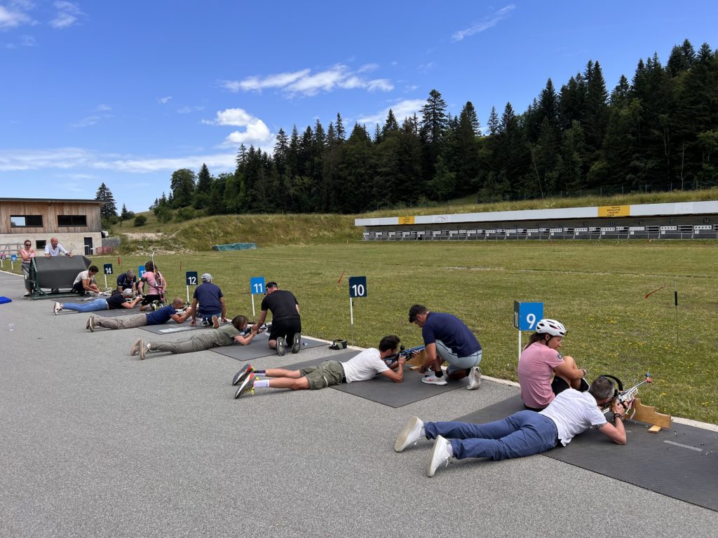 Au programme, accès à l’entrainement de l’Equipe de France de Biathlon, initiation au tir, challenge par équipe (invités, athlètes et membres de l’encadrement), visite du tremplin de saut à ski, déjeuner et temps d’échange avec nos biathlètes.