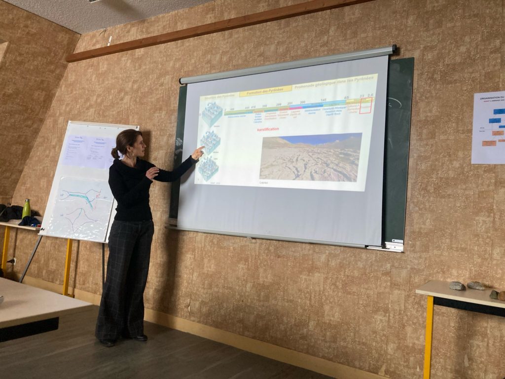 Le samedi, c’est 36 personnes qui chaussent les skis, direction le vallon de Sarrouyes. 4 groupes différents sont formés sous un beau soleil pyrénéen. L’après-midi était animée par Emmanuelle Ducassou, géologue, avec une conférence sur la formation de la chaine des Pyrénées.
