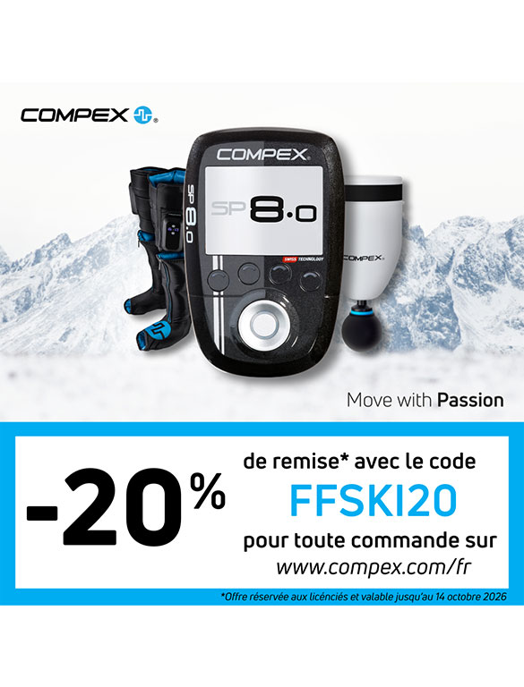 Pour toute première commande, hors frais, promotions, prix engagés, dlc courtes et produits marketplace. 50€ de remise max, sous réserve de confirmation de votre numéro de licence FFS.