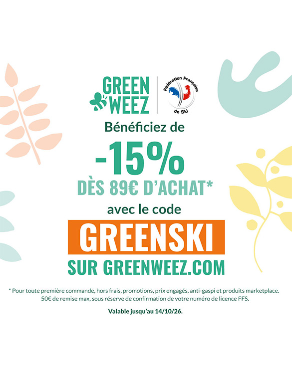 -15% sur le site greenweez.com, partenaire des Equipes de France de Ski Alpin et de Ski Cross, n°1 de la vente en ligne bio, dès 89 euros d’achat !