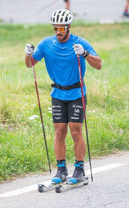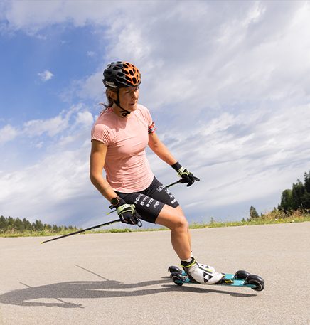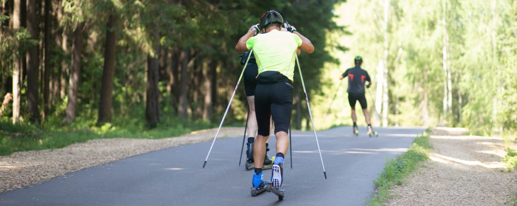 C’est un sport qui se pratique surtout hors saison hivernale, en préparation au ski de fond, biathlon et combiné nordique notamment.